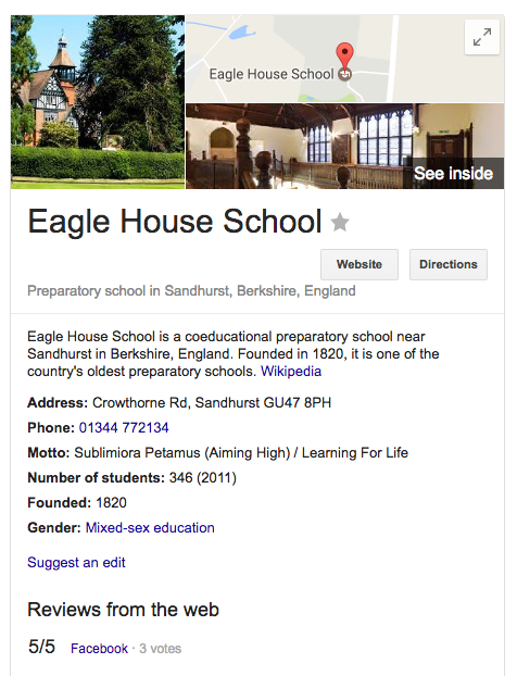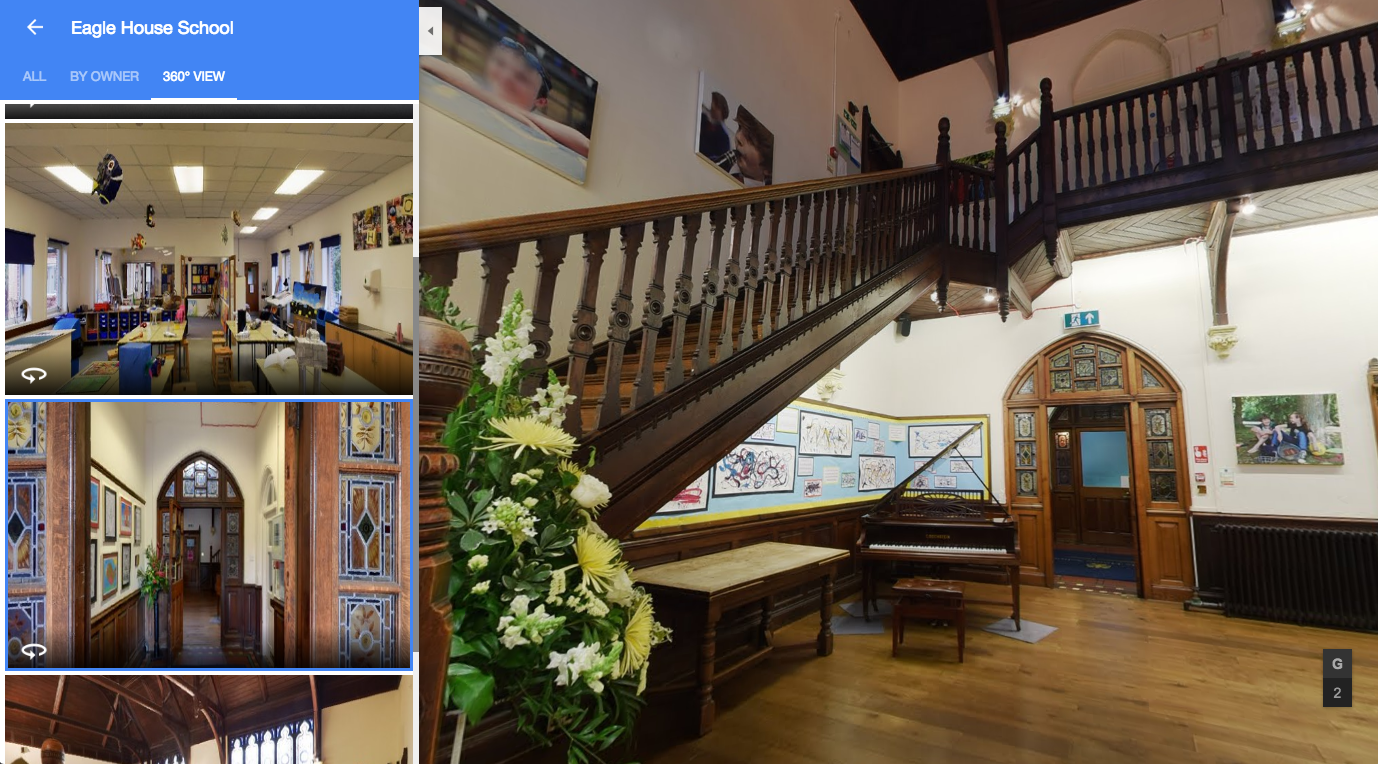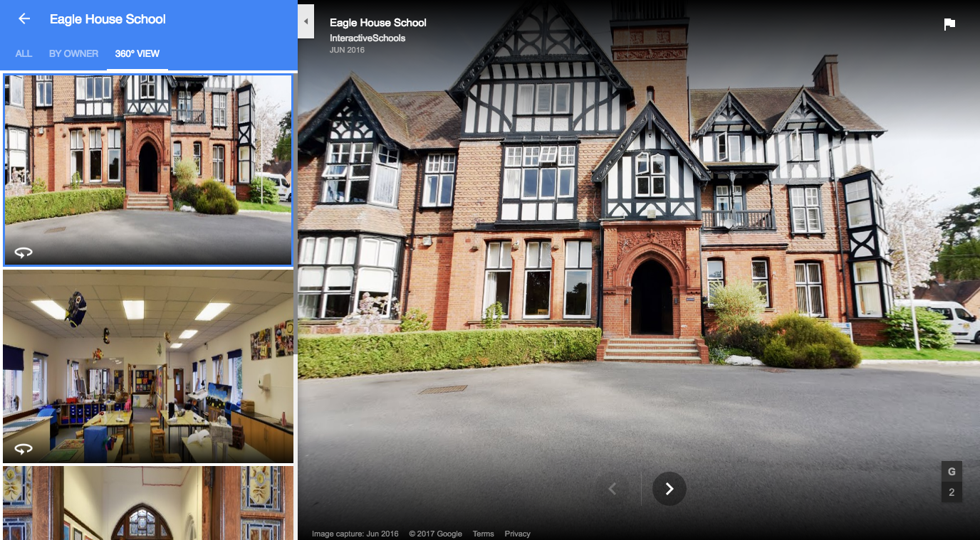 These can be built directly into Google, and Google Maps. Notice when you search for 'Eagle House School' on Google, it shows a 'See Inside' option.