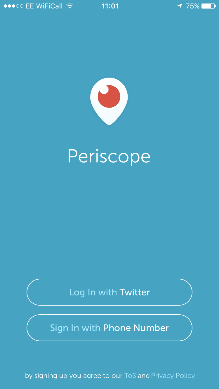 1. You can create a Periscope account downloading the app from the App Store or the Google Play Store.