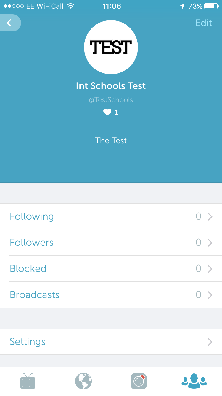 3. Your Twitter profile picture and bio will migrate over to your Periscope account. To change your photo, URL, bio or general info go to setting on your profile tab. We would recommend keeping your URL the same as your Twitter handle.
