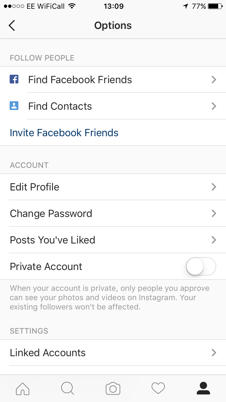 2. Go down to linked accounts in settings. From here you will be able to link multiple social accounts to your Instagram.