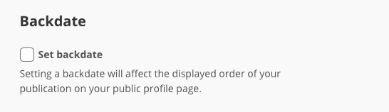 Backdating: Use this option to determine the order of your posts on your profile. Using the backdate feature will allow you to pick and choose the order in which you wish your posts to display and make sure your newest or best post appears at the front of your profile.