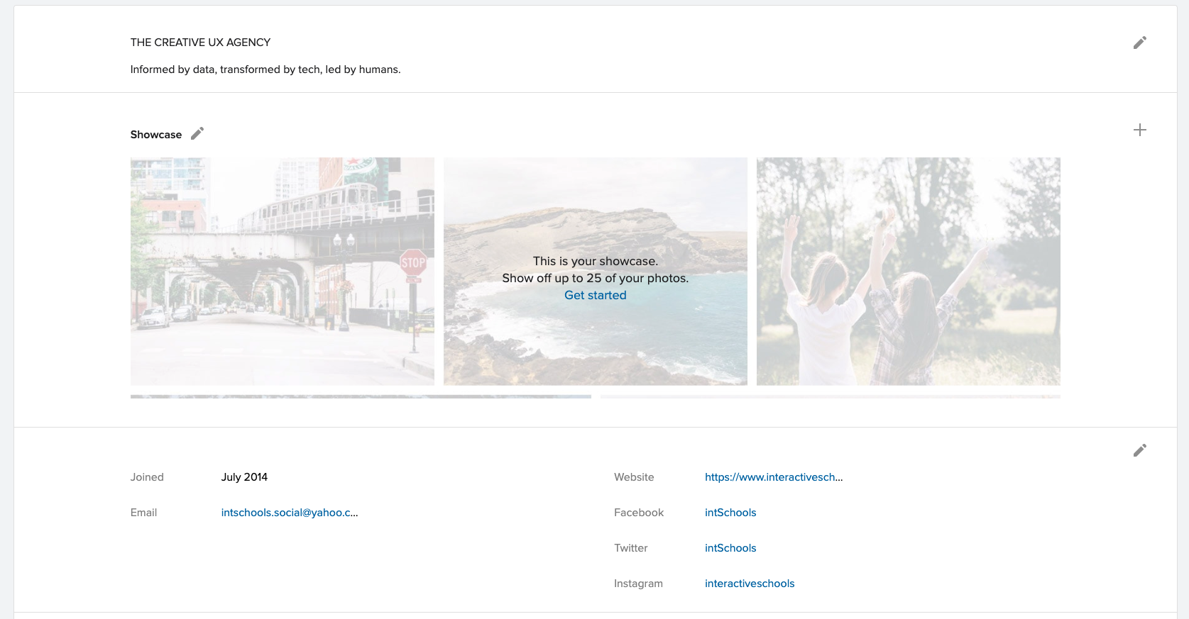 First, we must showcase your work. Go to your About page and under your description, you will see the Showcase section.