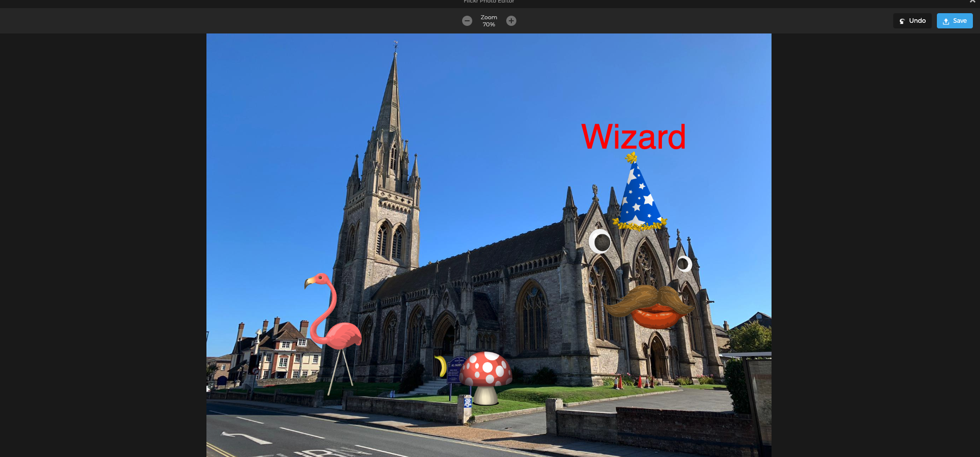 Select the edit image icon on the bottom right, the pop-up will then allow you to Edit, Rotate, Replace or Delete. Click the edit option and the Flickr Photo Editor will overlay on your screen.