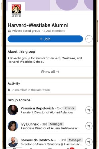 You are able to create groups which can be dedicated to specific communities at your school. These are commonly used for Alumni as a place to talk about events /activities happening at the School. These are run by admins rather than the pages themselves. @Harvard-Westlake-School seen below have an Alumni group with over 2000 members!