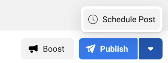 Next to the ‘Publish’ button is a dropdown arrow, click this and choose ‘Schedule Post’.