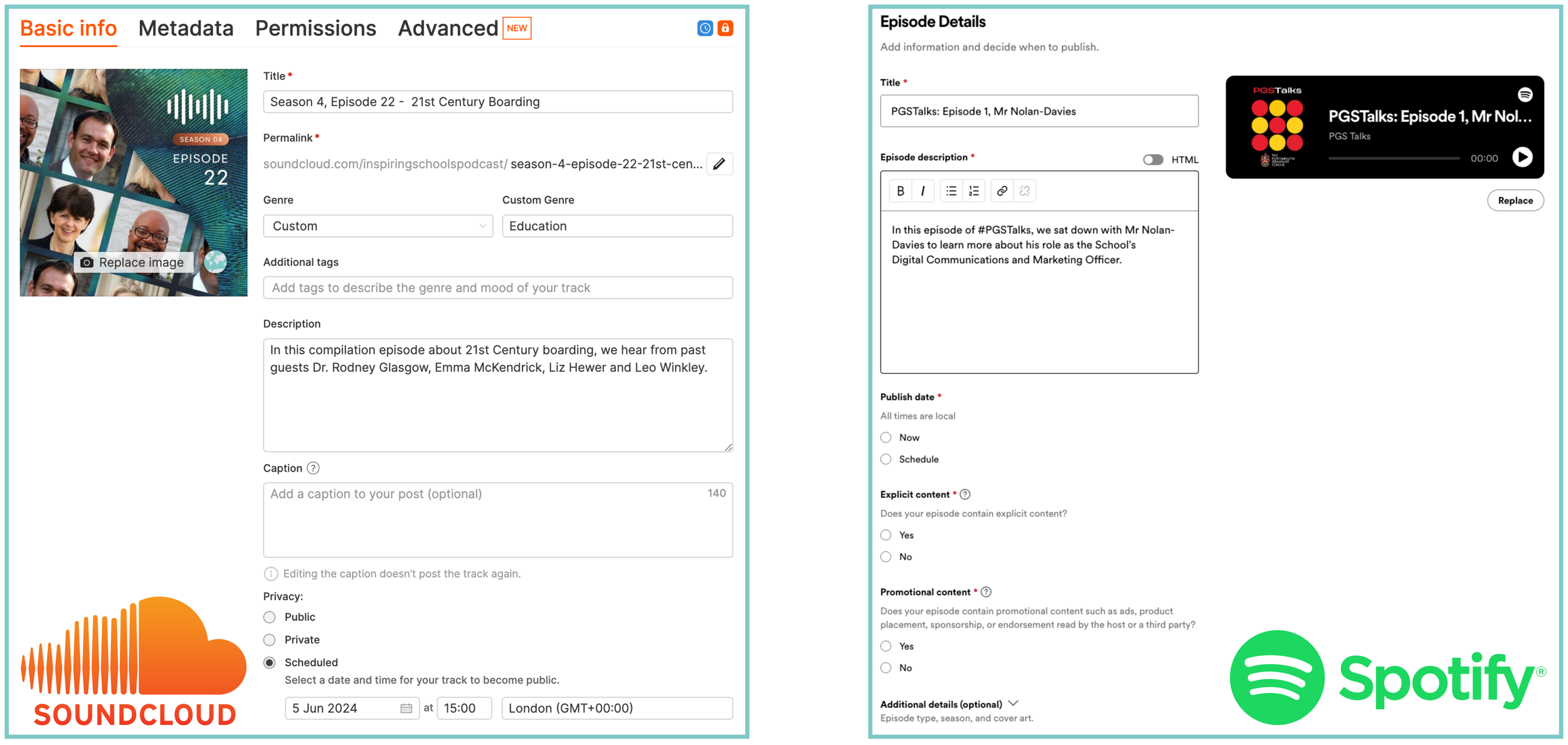 The next important step in podcasting is promotion. Although SoundCloud and Spotify are the best platforms for audio content, they are not likely to be channels that your audience look to regularly. This is why it is vital that marketers spread the word about podcasts in order to maximise views. Marketers may wish to include a countdown sticker with a short sound bite with a creatively designed episode thumbnail as the image on their Instagram to promote the podcast more widely or include a link to the podcast in the school newsletter for current families. If you would like any creative assistance with visual promotional aspects, please contact wow@interactiveschools.com.
