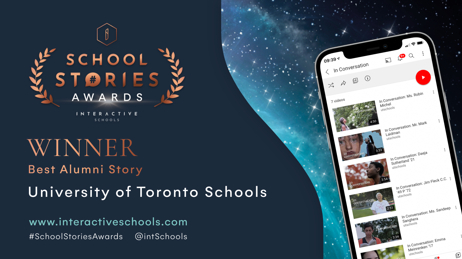 It’s crucial to never forget about your alumni when telling your #SchoolStories, so this was a hugely important category. It was judged by Andrea Carisse, the Director of Marketing & Communications at Ridley College in Canada. Andrea commented that what made the winning entry so outstanding is its genesis. A former student who left high school under the weight of a global pandemic, seeing their plans for post-secondary education and job prospects thrown into total uncertainty, reached out to his alma mater to create a video series in which he would interview current students, fellow alumni, and staff about their experiences with the humanities at the school. The result was a series called "In Conversation" which showcases not only a great swath of diversity within the school community, but in and of itself is a beautifully crafted exercise in filming, video editing, and interviewing skills - all passions developed by the student throughout his time at the school. The winner of 'Best Alumni Story' is University of Toronto Schools, with a special mention to Jay McGregor for pioneering the project!