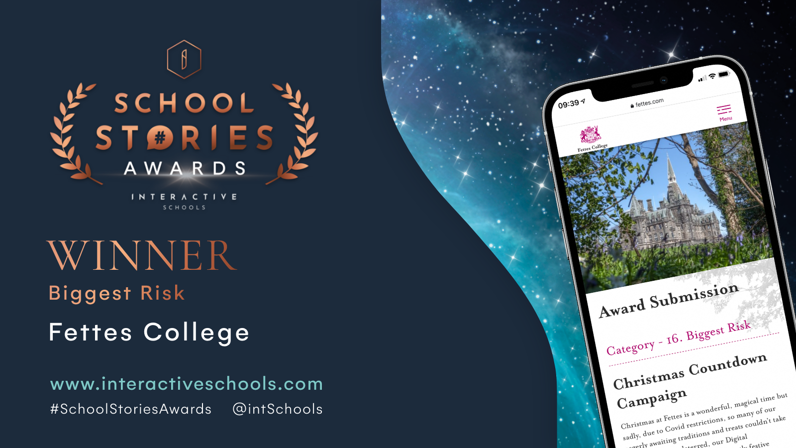 Taking calculated risks is what can lead to great innovation and we enjoyed reading through the 'Biggest Risk' submissions as they showed great creativity. The winning entry was chosen by Irfan Latif, and he commented that Fettes College’s submission showed a sustained commitment to engage the entire community over the Christmas period with some cracking results, great work!
