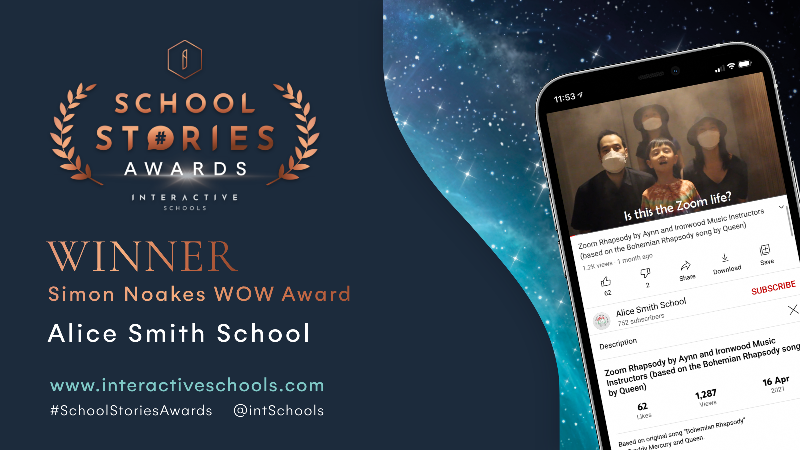 The Simon Noakes WOW Award was won by Alice Smith School! Their ‘Zoom Rhapsody’ was simply brilliant and Simon wants the world to see this video. It was authentic, topical, included and connected the school community, plus he felt everyone could relate to this around the world - in or out of school. A clear winner that should have much more views than it does on Youtube!