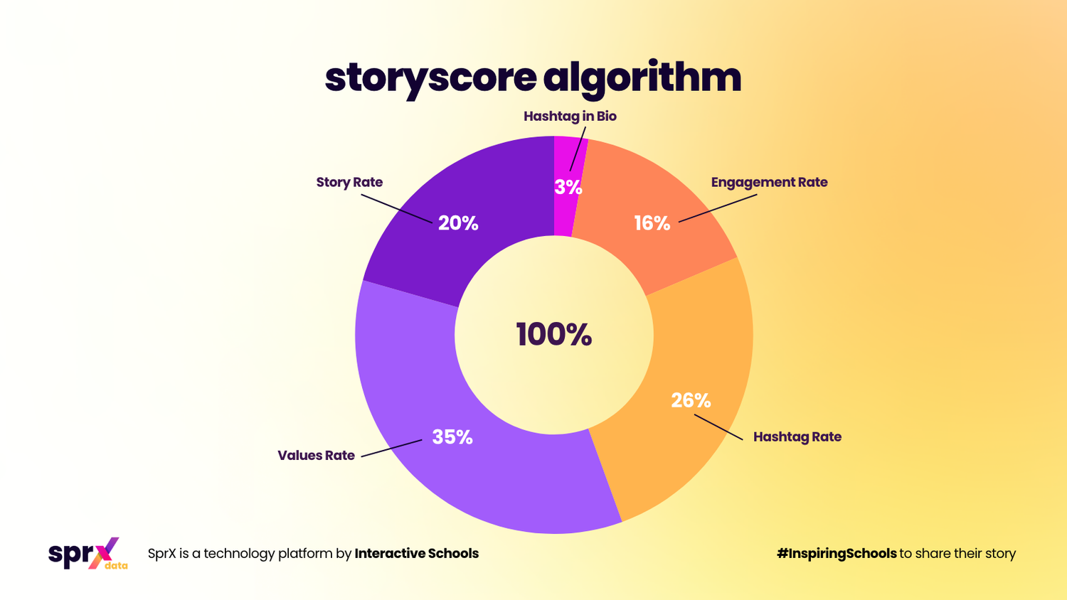 We have created the #StoryScore to focus on what is meaningful on social media. It is our social media reporting tool developed by our wonderful Interactive Schools data team. They have pulled every platform apart, combined with our social media expertise and strategy to create an algorithm to accurately measure your social media presence. Your #StoryScore reflects how well your school is performing on social media in terms of the quality and breadth of your stories and even whether you are living into your School values.