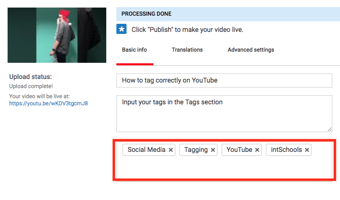 How does tagging work across YouTube? When you upload your content under the description box there is the opportunity to tag your work, this will then be used to filter and personalise your videos. Additionally, you can include your personalised hashtags within the video description along with any call to actions.